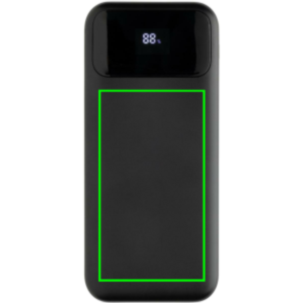 All in one fast charge powerbank with integrated cables and power display. The 10,000 mah powerbank comes with an integrated type C and integrated Apple Lightning cable so that you can easily connect to your device to start fast charging your mobile device. With one additional type C port and USB A port to connect your own charging cable. When fully charged the powerbank provides you with enough energy to re-charge your mobile phone up to four times. The powerbank contains a long lasting grade A 10.000 mAh lithium polymer battery. Made with recycled ABS and recycled TPE. Total recycled content: 23% based on total item weight. RCS certification ensures a completely certified supply chain of the recycled materials. With digital display to show the remaining power. Packed in FSC® kraft packaging. PVC Free. USB-A output 5V⎓3.0A, 9V⎓2A, 12V⎓1.5A; USB-C output 5V⎓3.0A, 9V⎓2.22A, 12V⎓1.67; Type-C input 5V⎓3.0A, 9V⎓2A, 12V⎓1.5A; Built-in USB-C cable Output: 5V⎓3A 9V⎓2A 12V⎓ 1.5A;